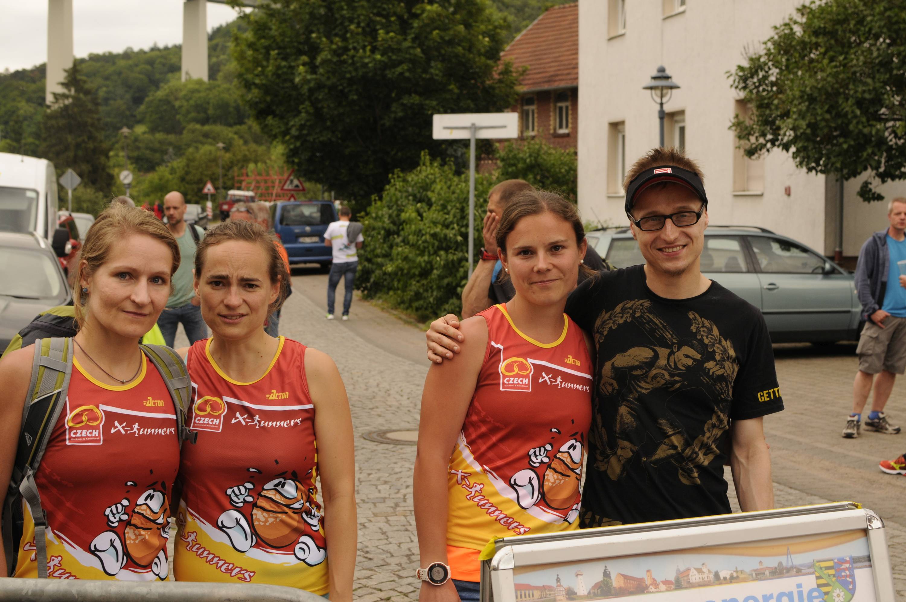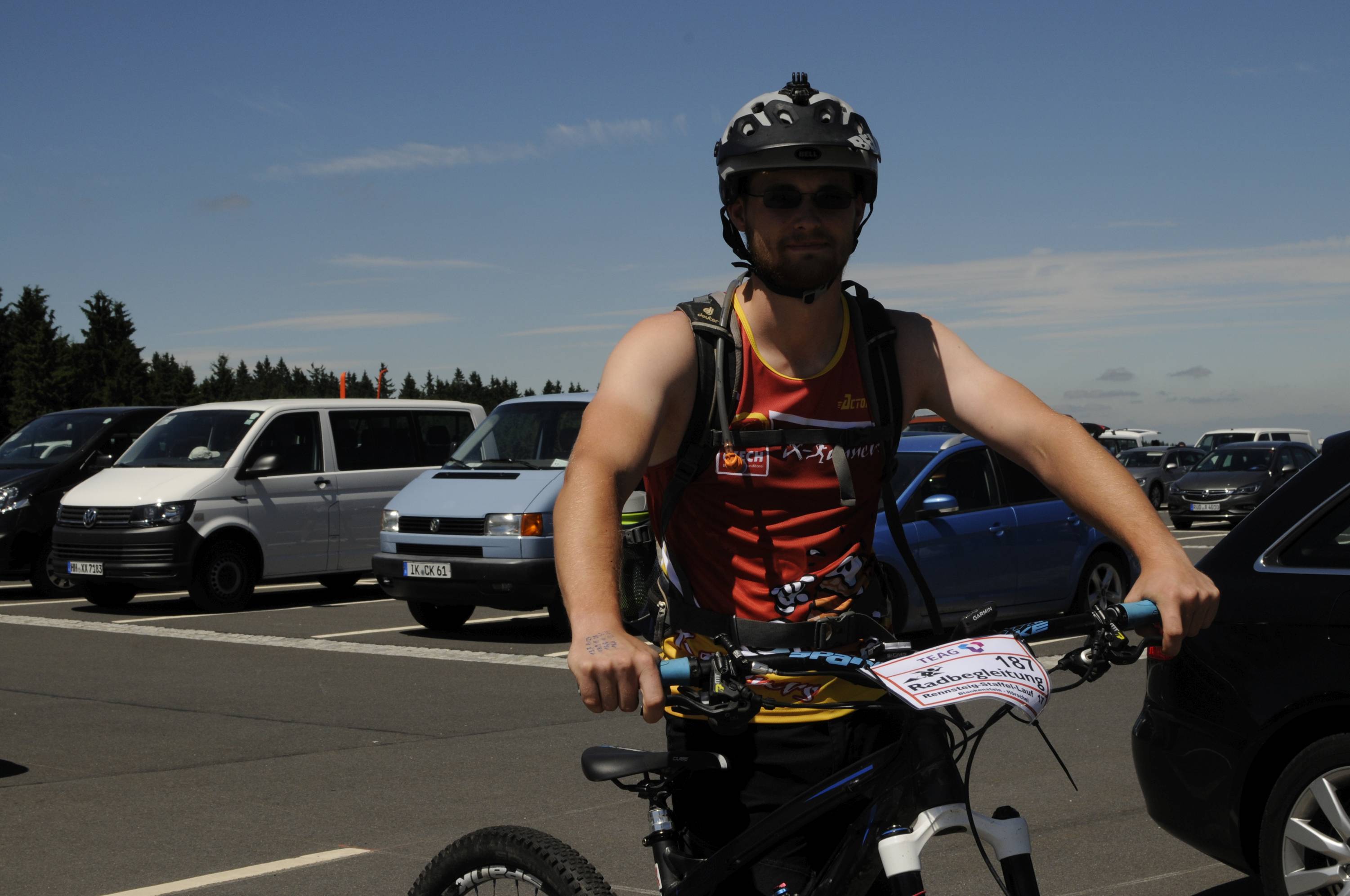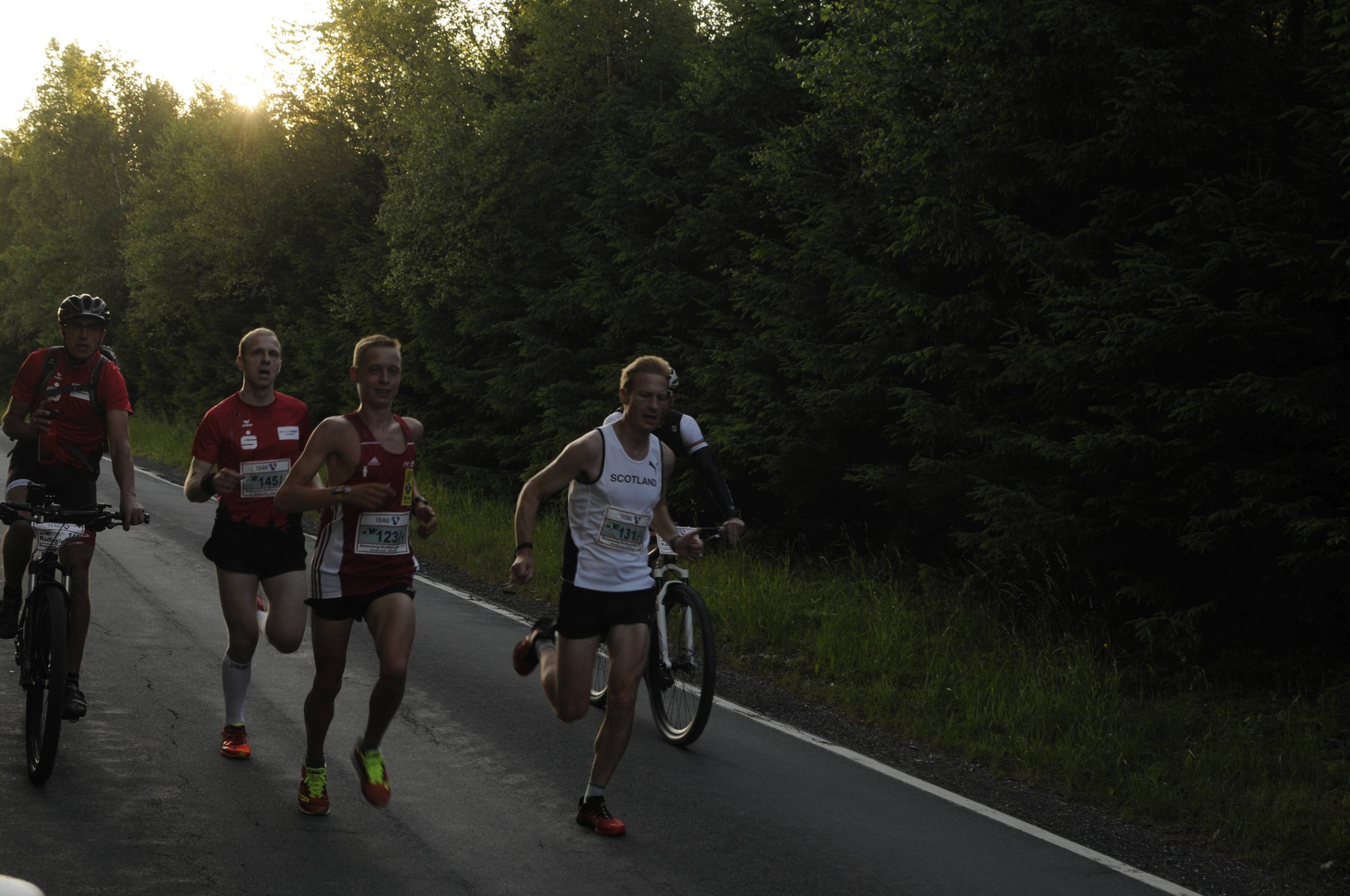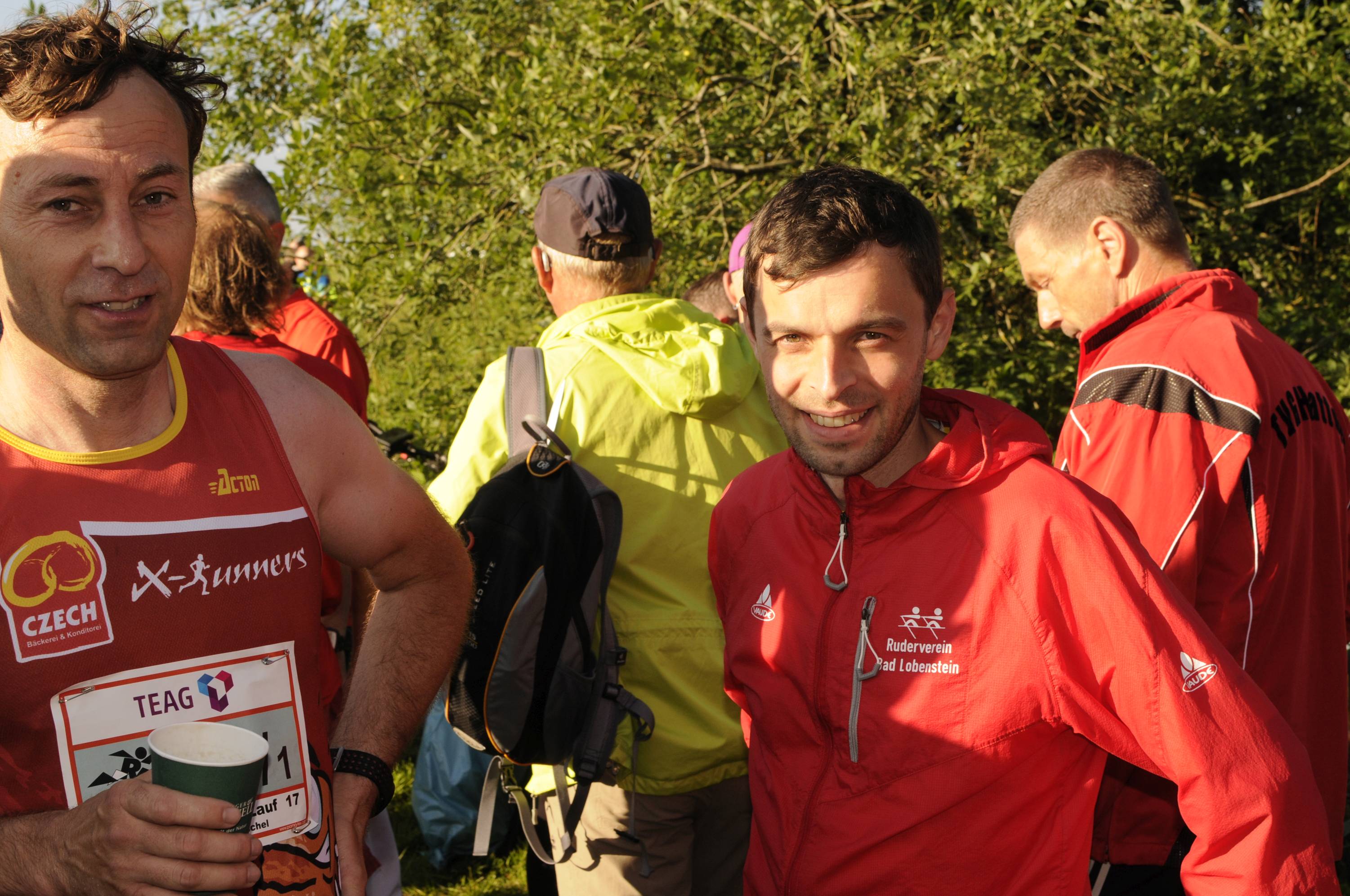 Unser Team I war im Vergleich zum Vorjahr auf 2 Etappen umbesetzt und startete mit 1. Chunky Liston 2. Tobias Schröder 3. Sebastian Seyfarth 4. Stephan Holesch 5. Willi Paufler 6. Theo Popp 7. Florian Lecht 8. Lucas Schädlich 9. Thomas Häusler 10. Marius Faber. Bernd Ballhausen übernahm wie gewohnt die erste Hälfte der Radbegleitung gefolgt von Andre Bräuer, der ab Allzunah bis ins Ziel in die Pedalen trat. Frank Hausmann fuhr als Coach von Wechsel zu Wechsel mit, die Laufschuhe schon am Fuß, falls einer ausfällt. Das ist zusätzlicher Teamgeist, dann auch auf der 9. Etappe der Mixed-Mannschaft als Läufer auszuhelfen.