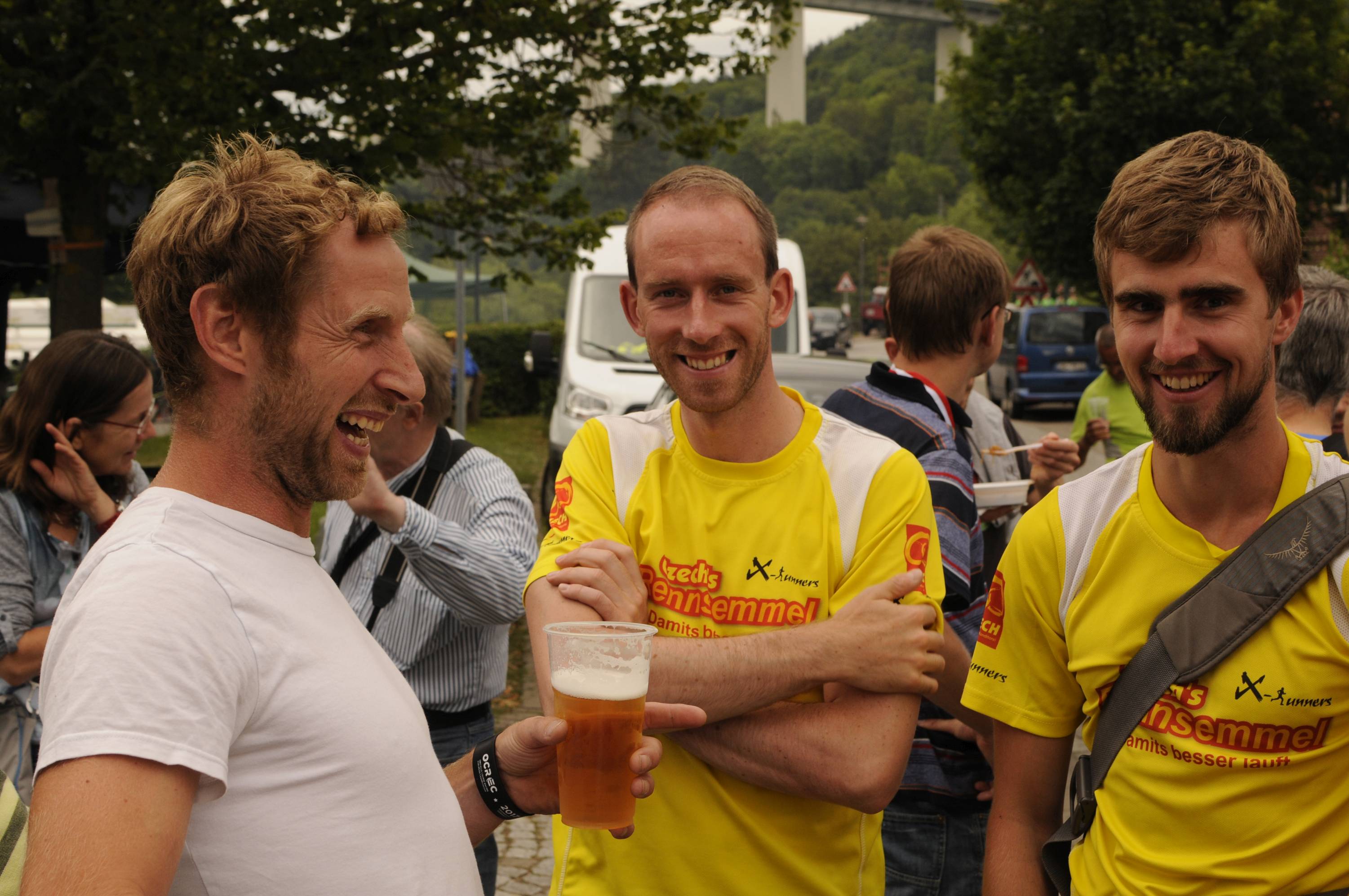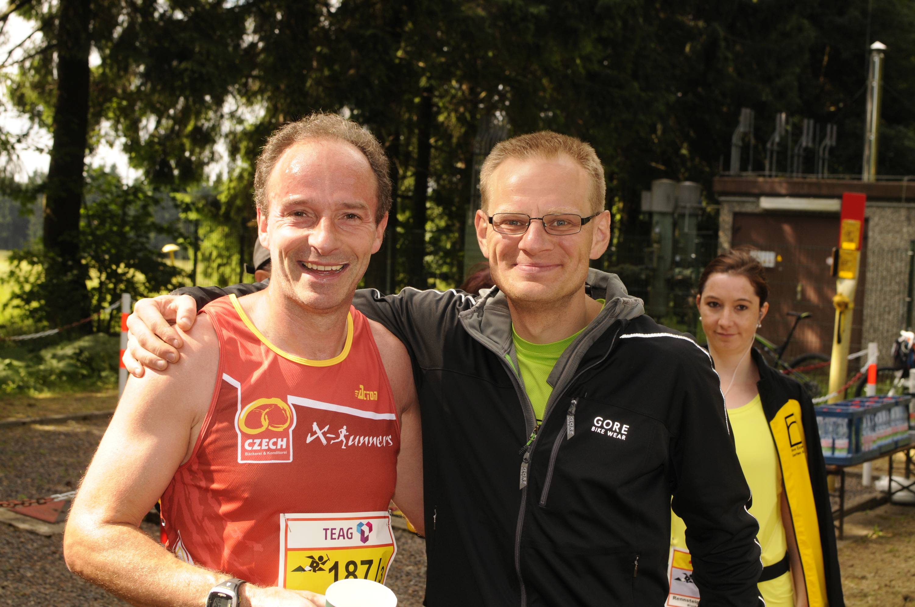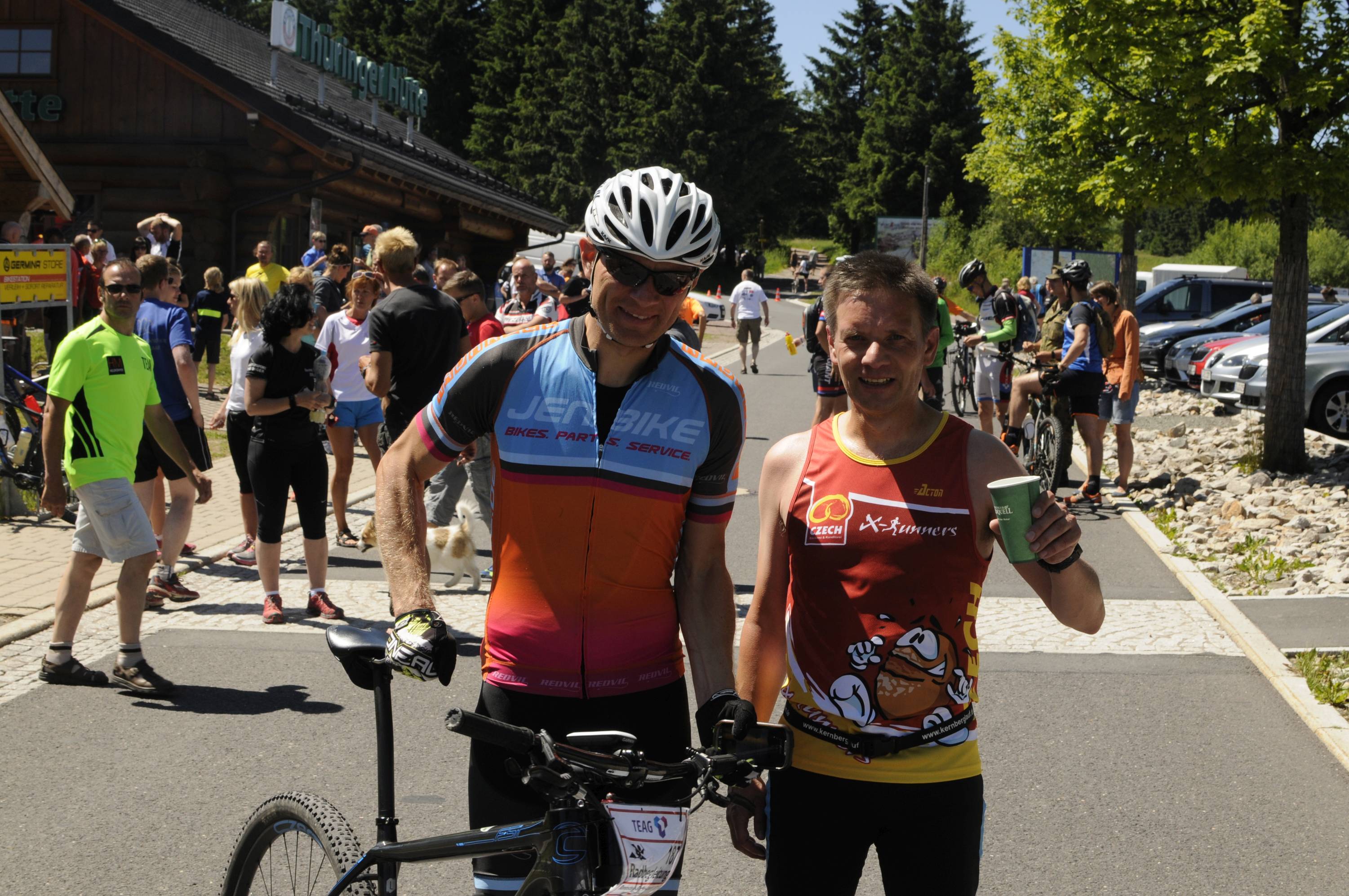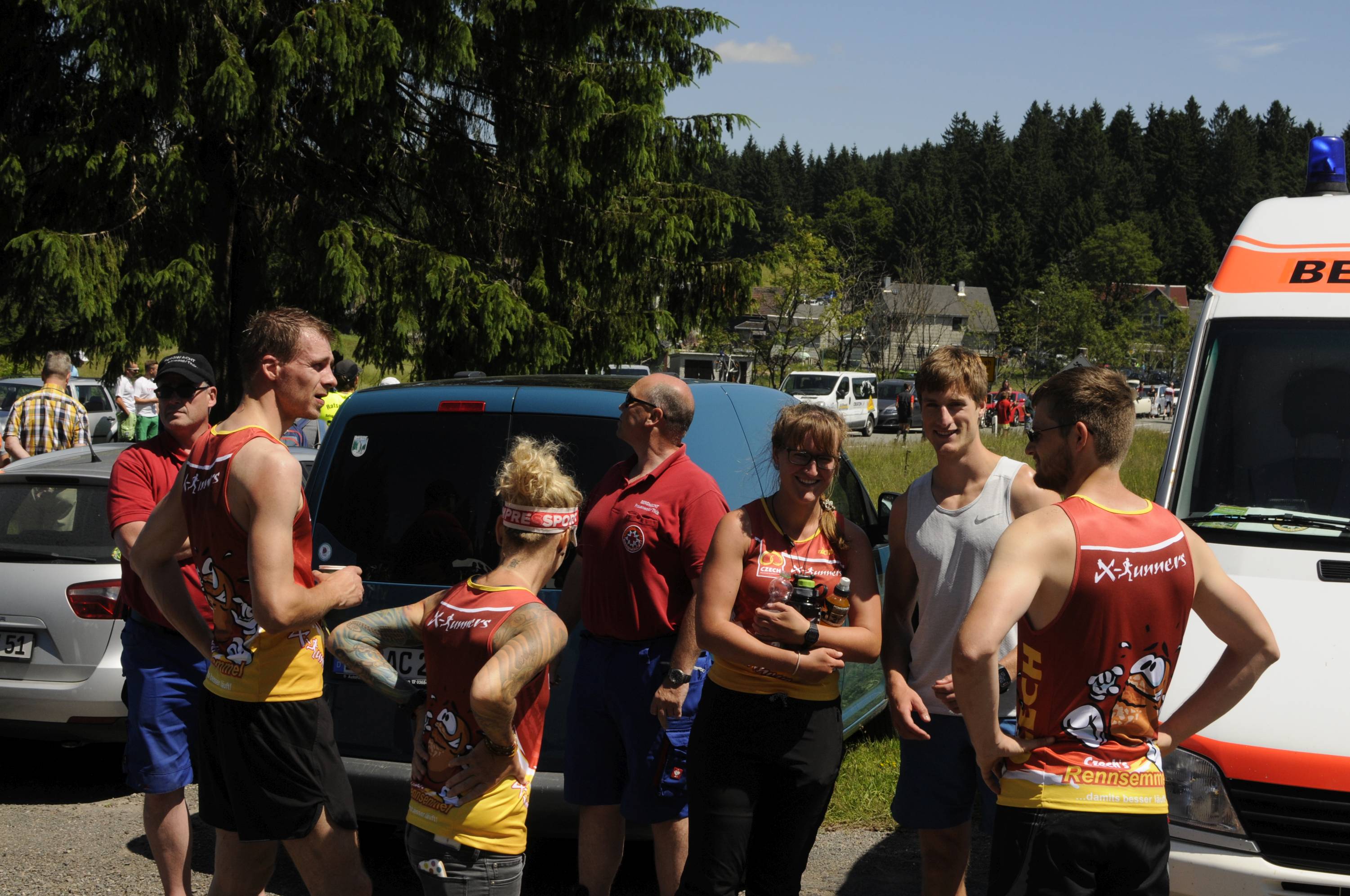 Unser Team I war im Vergleich zum Vorjahr auf 2 Etappen umbesetzt und startete mit 1. Chunky Liston 2. Tobias Schröder 3. Sebastian Seyfarth 4. Stephan Holesch 5. Willi Paufler 6. Theo Popp 7. Florian Lecht 8. Lucas Schädlich 9. Thomas Häusler 10. Marius Faber. Bernd Ballhausen übernahm wie gewohnt die erste Hälfte der Radbegleitung gefolgt von Andre Bräuer, der ab Allzunah bis ins Ziel in die Pedalen trat. Frank Hausmann fuhr als Coach von Wechsel zu Wechsel mit, die Laufschuhe schon am Fuß, falls einer ausfällt. Das ist zusätzlicher Teamgeist, dann auch auf der 9. Etappe der Mixed-Mannschaft als Läufer auszuhelfen.