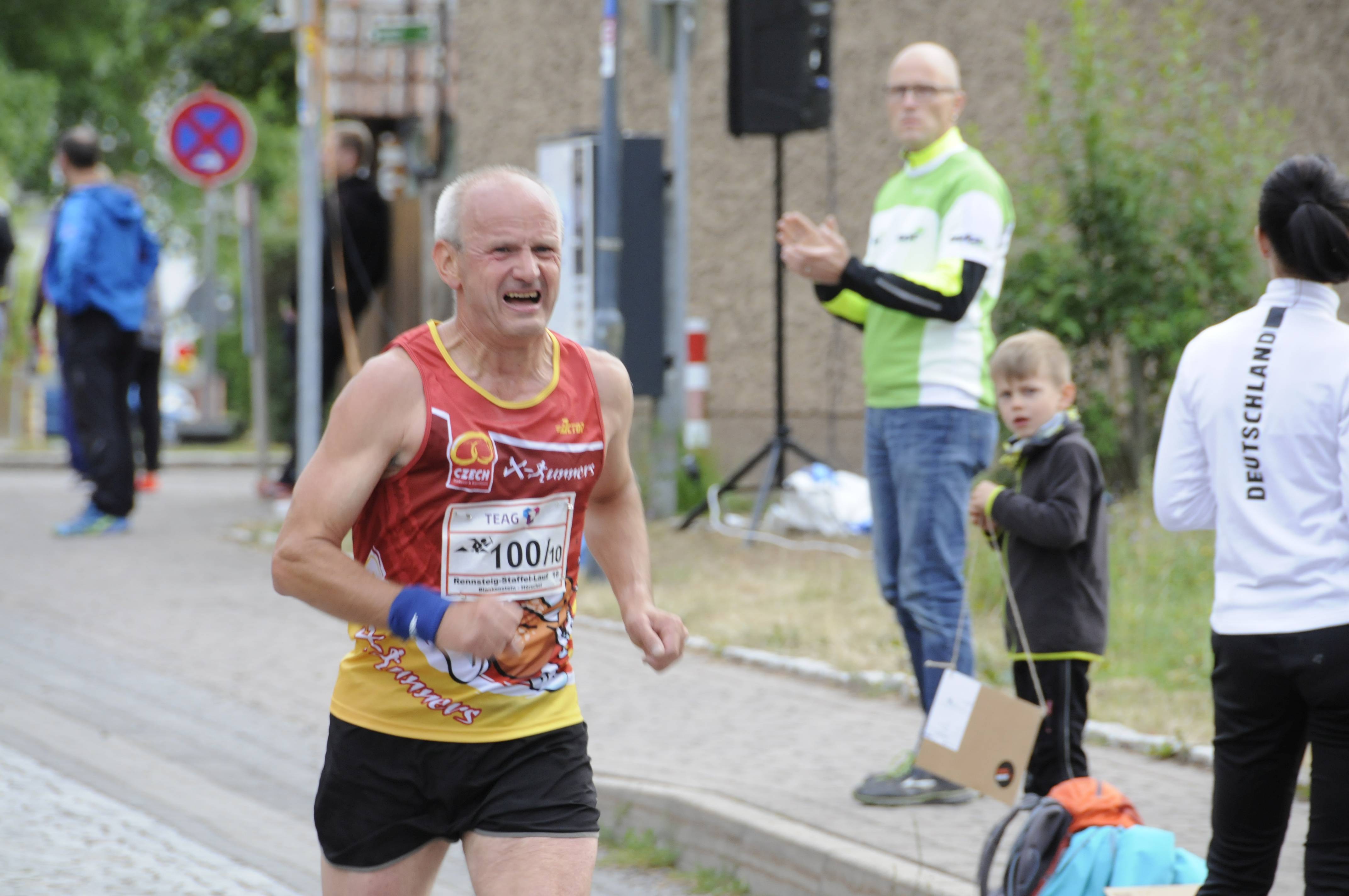 Die Schlacht ist geschlagen oder treffender, unser Jahreshöhepunkt ist erfolgreich absolviert. Wie in den Vorjahren brachten wir drei Teams an den Start. Bereits um 5:00 Uhr startete unser Mixed-Team mit Lokalmatador Jörg Neubauer. Ihm folgten Franz Burgold, Janett Pertsch, Matthias Haase, Antonia Erpel, Alex Beer, Manuela Körner, Margarete Voigt und Frank Hausmann, ehe Kathleen Alles noch einmal ALLES in den Endspurt packte und das Team nach 13:18:23 Stunden über den Zielstrich führte. Das bedeutete einen tollen 6. Platz unter den Mixed-Staffeln (nur 2016 war man eine Platzierung besser) und gleichzeitig Vereins-Bestzeit für uns in dieser Kategorie. Toller Ansporn und Hilfe in der Radbegleitung waren dabei Stephan Thomas und Georg Glück. Frank und Alex, die jeweils auch eine Etappe liefen, fungierten als Coaches. In der Endabrechnung aller 228 Staffeln sprang der 26. Platz heraus.