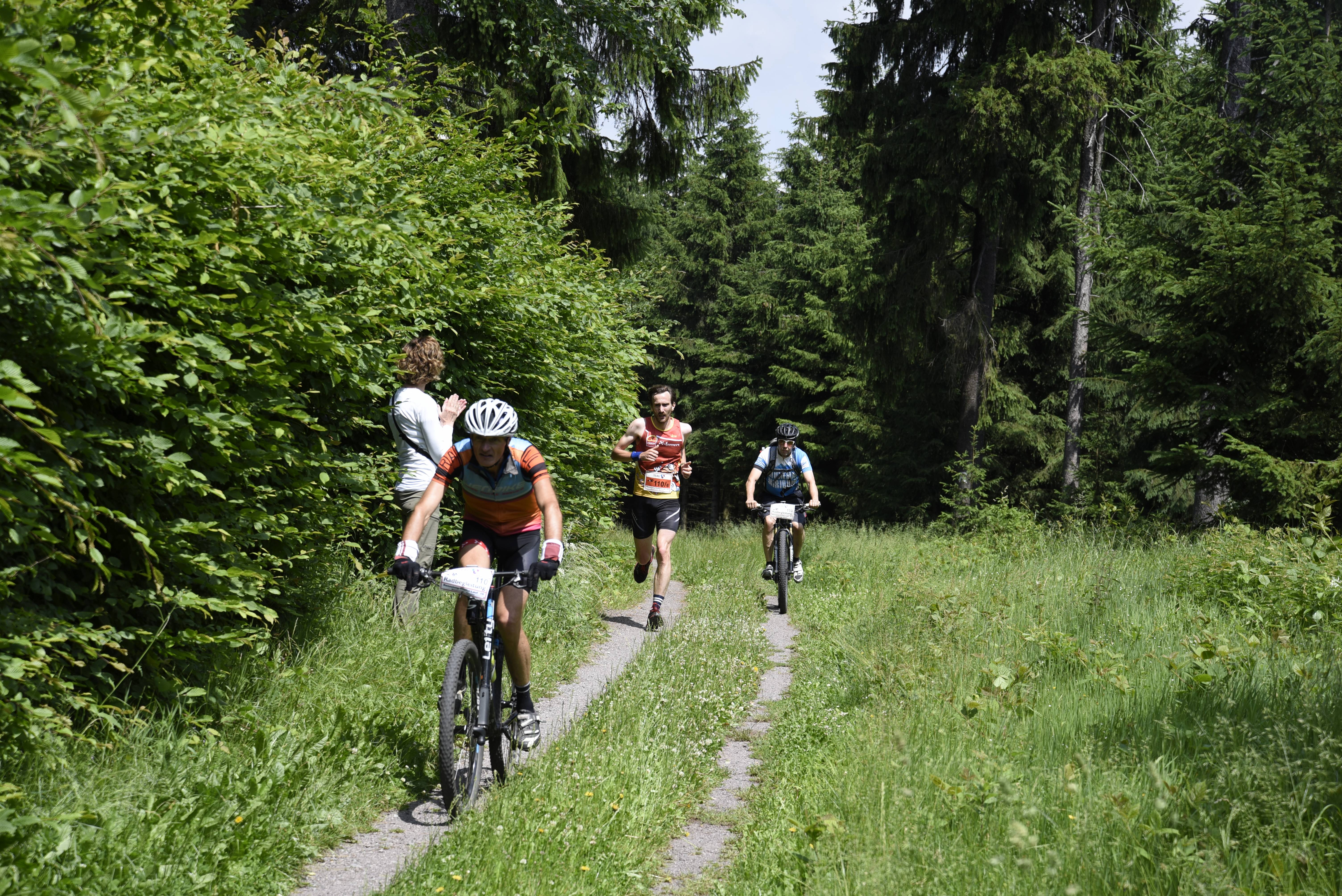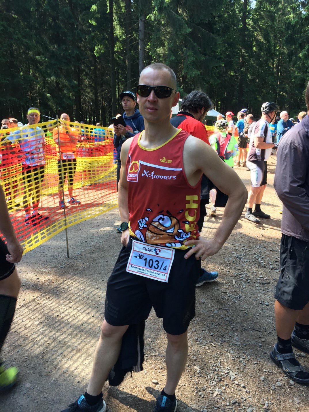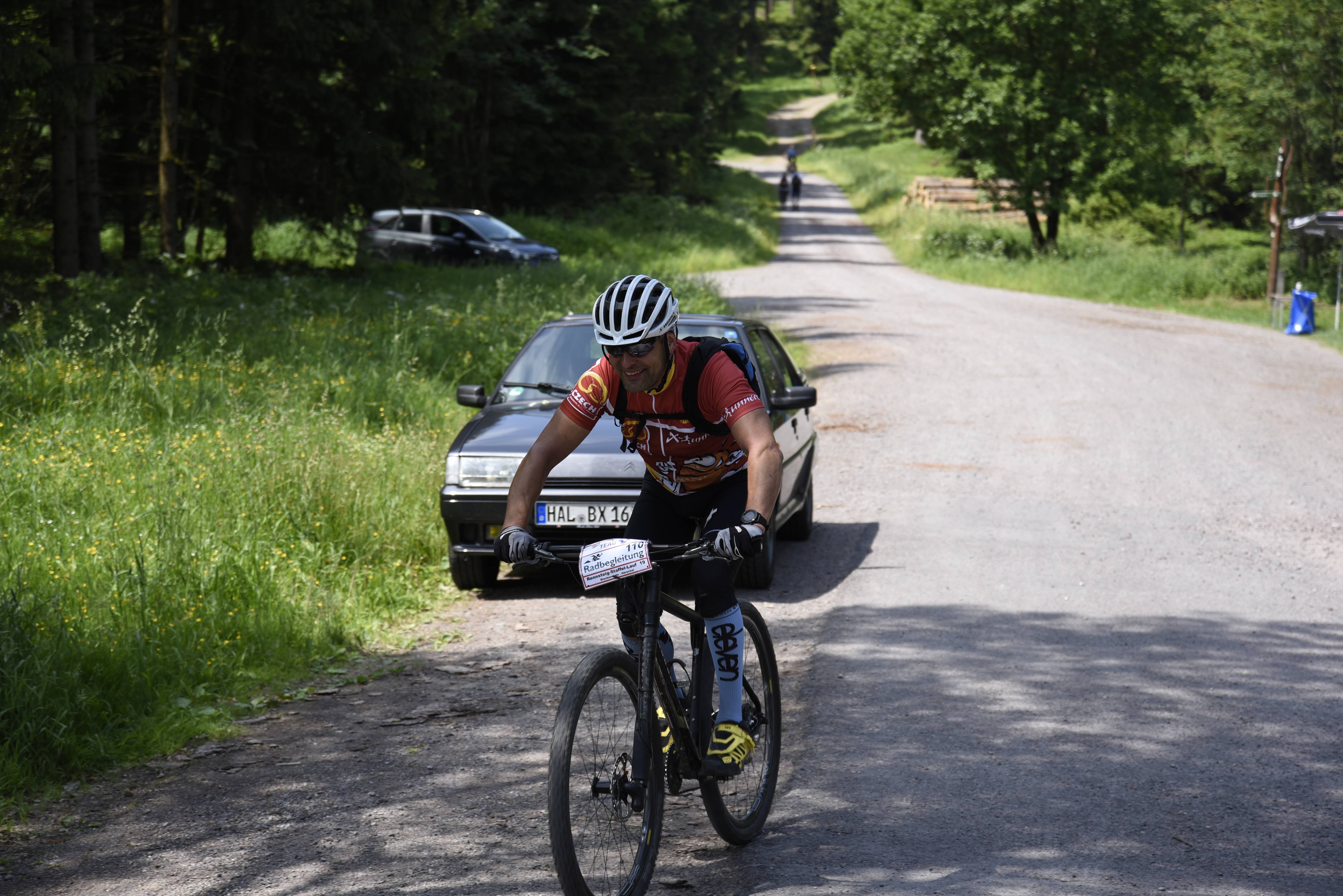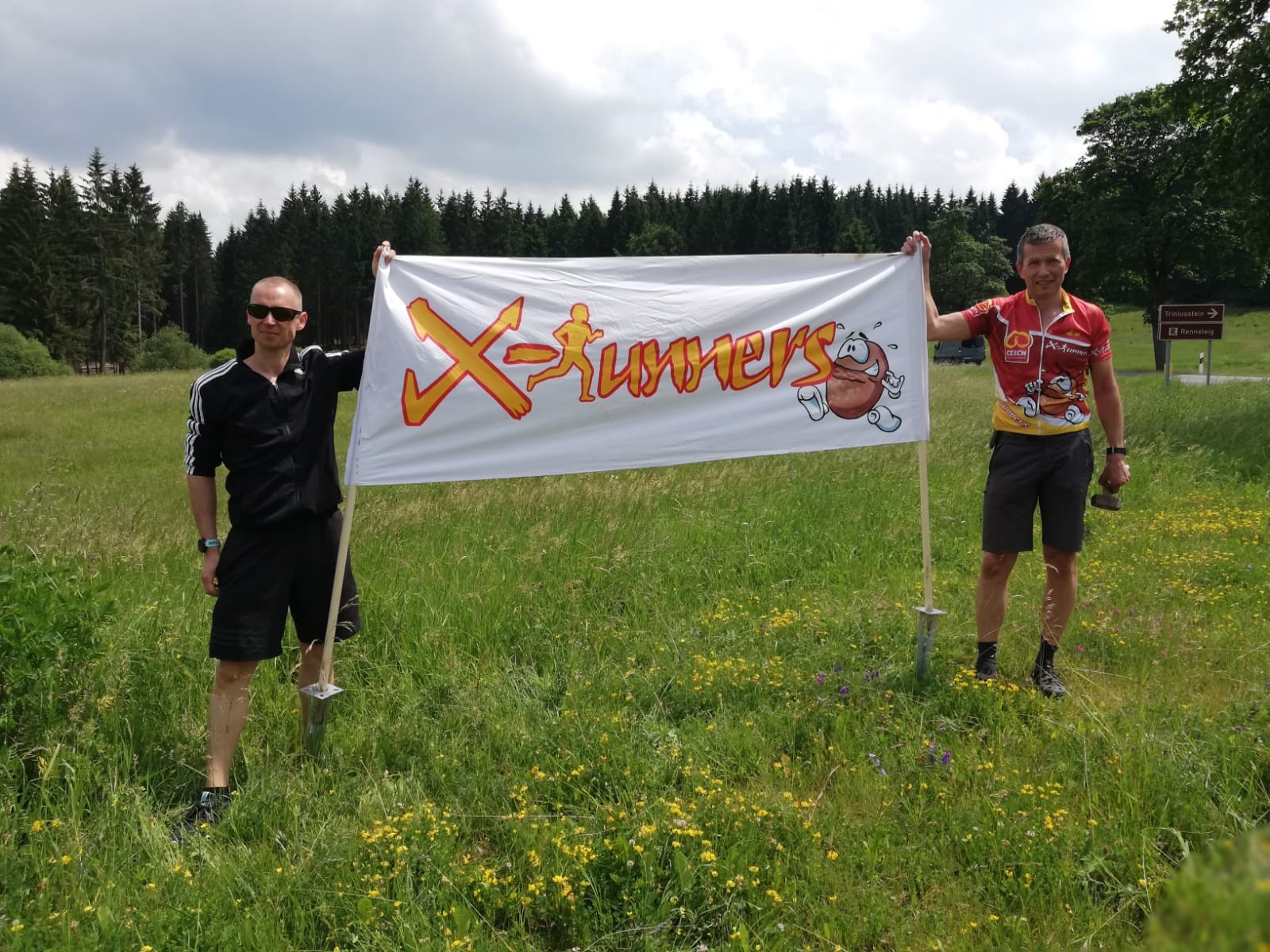 Die Autofahrt von der Ausspanne zum Grenzadler ist weit. Wir schaffen es gerade so, den Wechsel auf Andreas zu erleben, da Maik deutlich unter seiner anvisierten Zeit bleibt. Andreas und Pawel sind mit dem Laufsport Triptis angereist, der erstmalig eine eigene Mannschaft stellt. Wir fahren weiter nach Allzunah. Mit der Ortskenntnis der letzten Jahre gelangen wir auf den kleinen Parkplatz direkt am Wechselpunkt. Hier wartet Daniel, der die zweite Hälfte auf dem Rad begleiten soll. Das mitgebrachte Rad von Alex Jochim wird abgeschnallt und Daniel macht sich schnell mit dem Navi vertraut. Andreas benötigt genau die geplante Zeit und übergibt auf Platz 54 an Pawel. Ulrich fährt noch bis zum Parkplatz an der Triniusbaude weiter, so dass ein gleitender Übergang der Randbegleitung erfolgt. Das Rad wird aufgeladen und Ulrich steigt zu Maik, Margarete und Ingolf ins Auto. Pawel kämpft sich den Trail zum Ersteberg hinauf.
