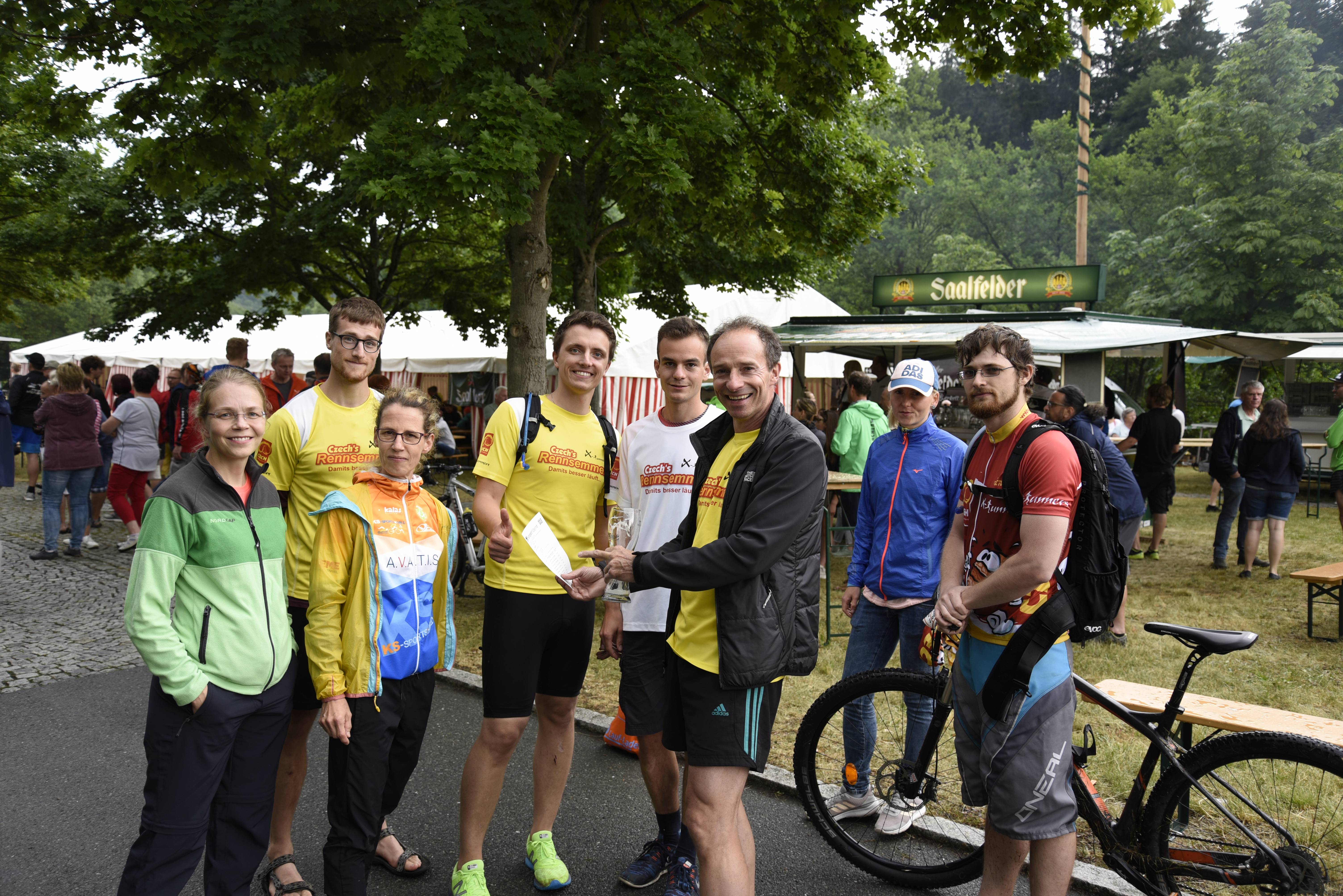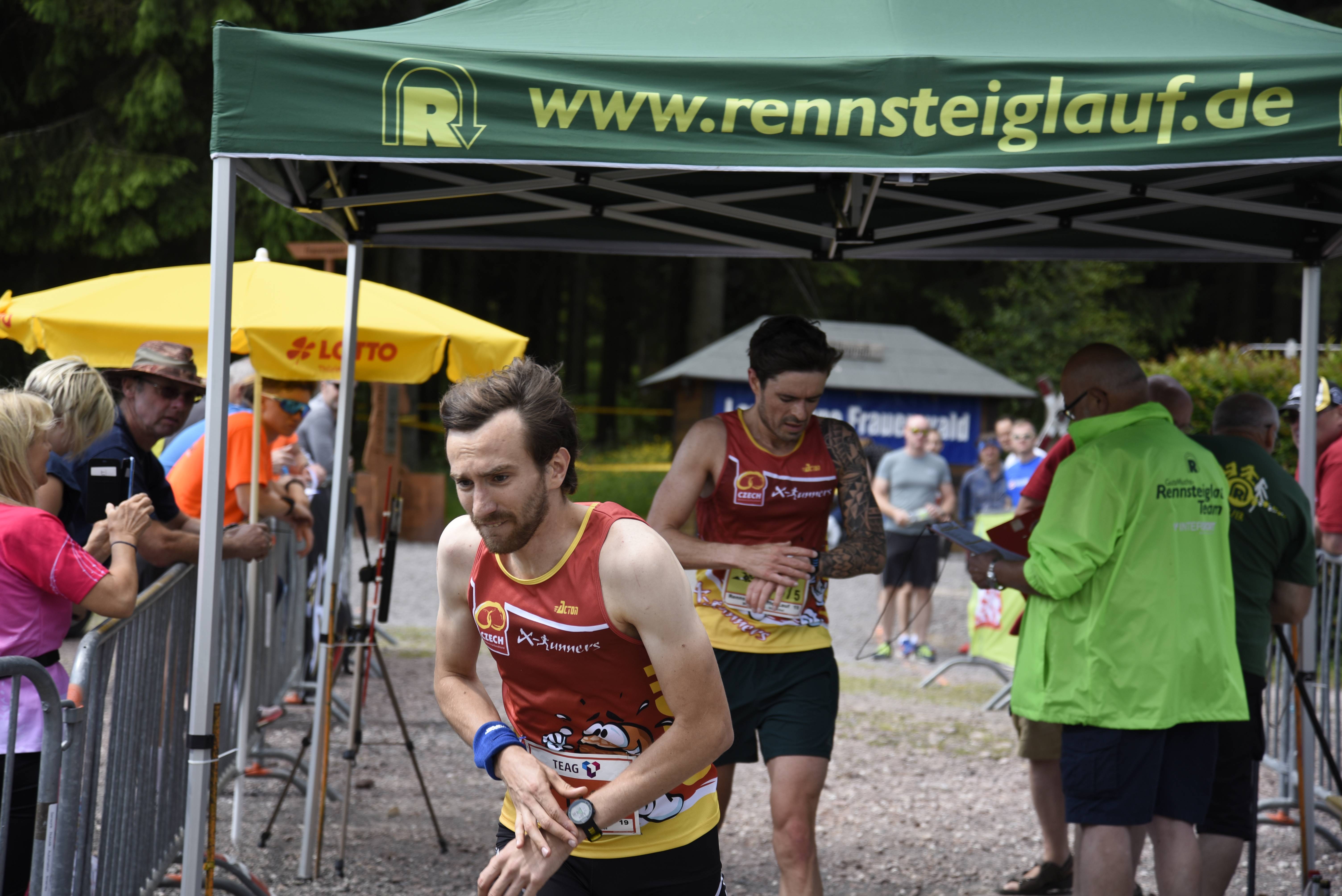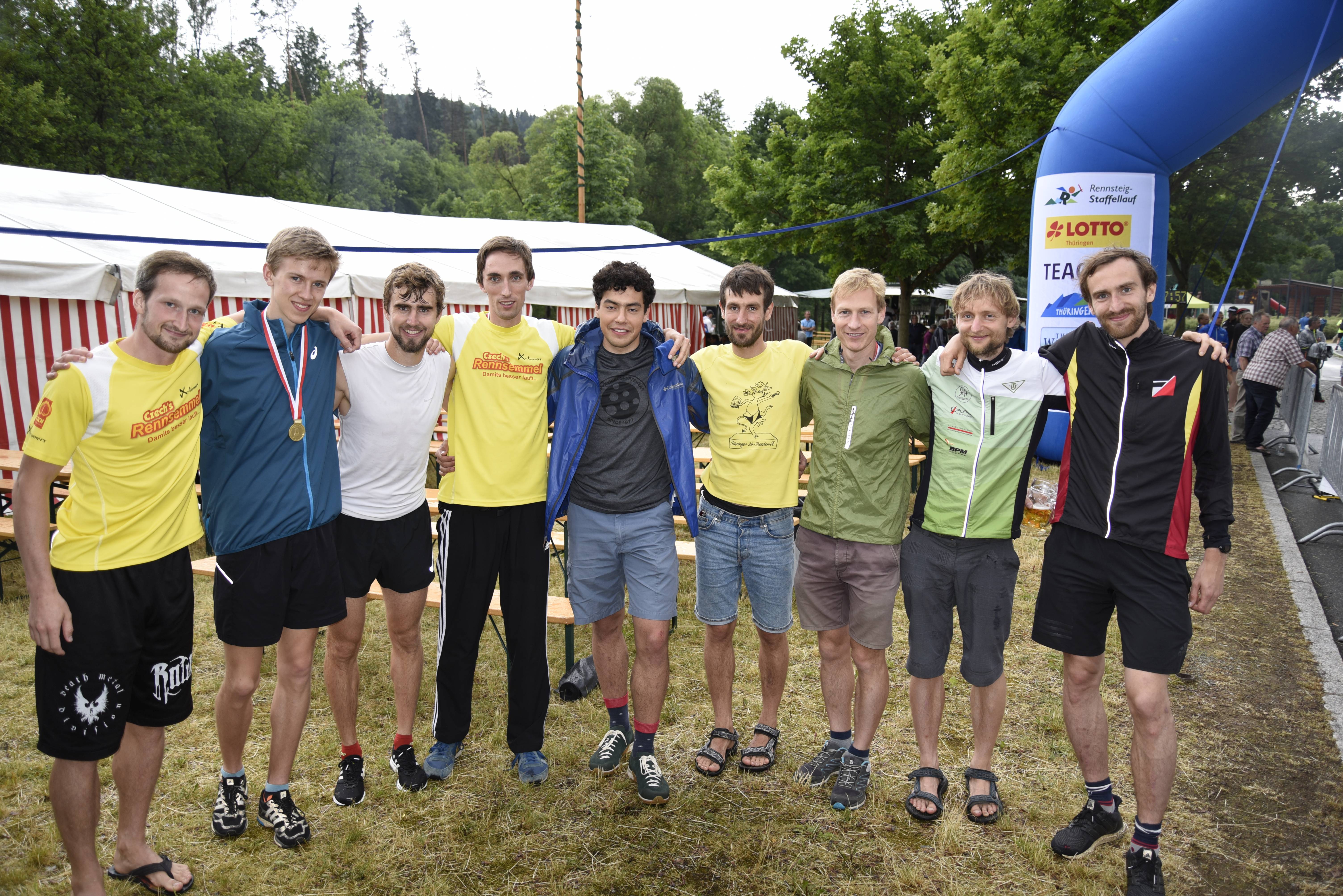 Nach einer guten Stunde überquert er gegen 16:49 Uhr die Ziellinie, flankiert mehr als zehn verfügbaren X-Runners im Zielbereich. Damit haben wir einen zweiten Platz gewonnen und andere namhafte Teams, wie den Rennsteiglaufverein und das Team Jena, klar hinter uns gelassen. Eine super homogene, geschlossene Mannschaftleistung!
