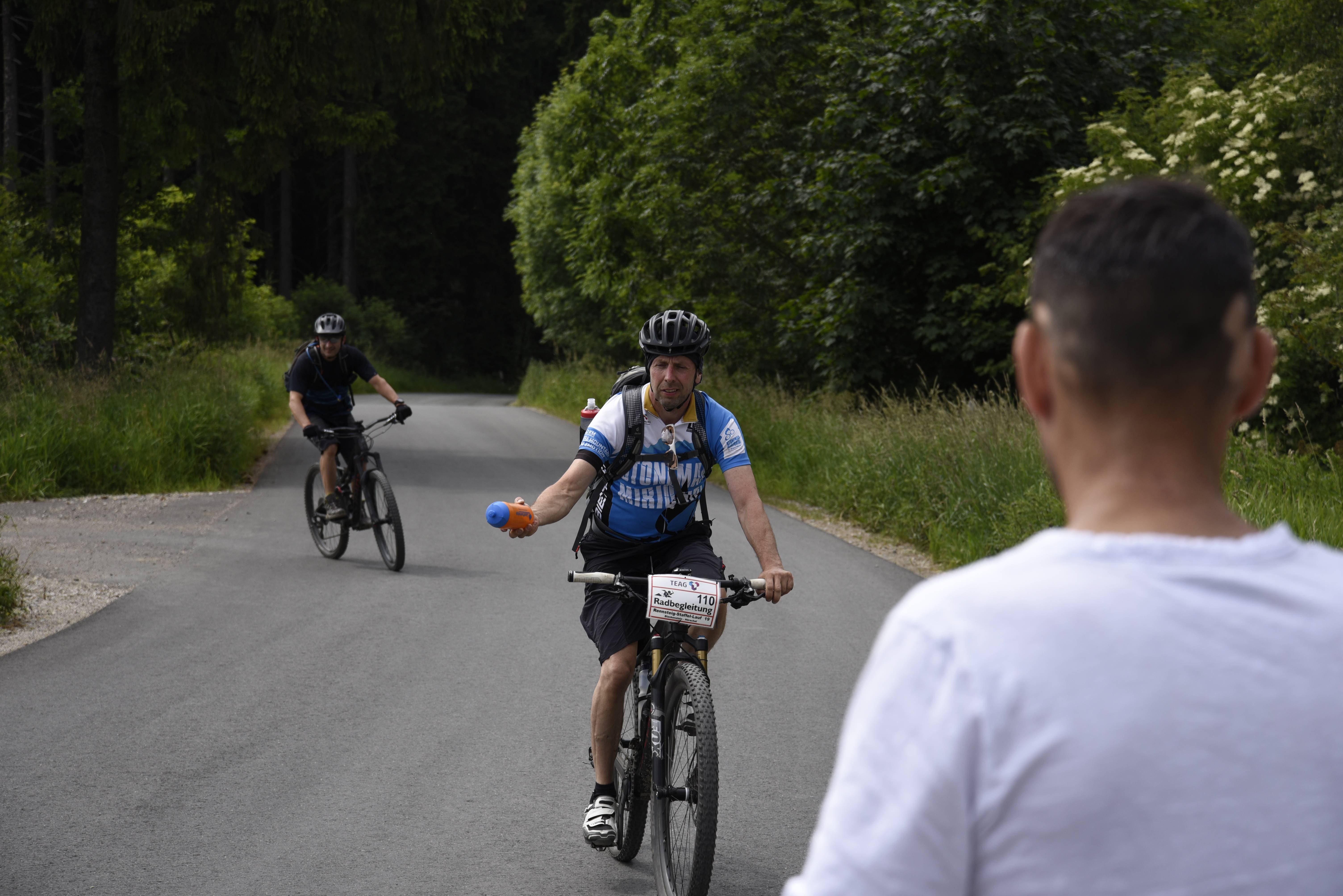 Thomas Häusler übernimmt auf Position vier und macht zwei Plätze auf den 13,9 Kilometern gut. Der Rückstand nach vorn ist auf etwa 12 Minuten angewachsen, nach hinten der Vorsprung beträgt aber auch schon 4 Minuten. Während Thomas mit dem von Robert mitgeführten Bike zurück zu seinem Auto zurück radelt, ist mit Wieland Kundisch unser erster Orientierungsläufer unterwegs. An dieser Stelle auch das erste Wort zu unseren Radbegleitern Andrè Bräuer und Henry Schneider. Diese haben die erste Hälfte vor zwei Wochen vorbereitend abgefahren und strahlen jetzt im Sattel entspannte Ruhe aus.