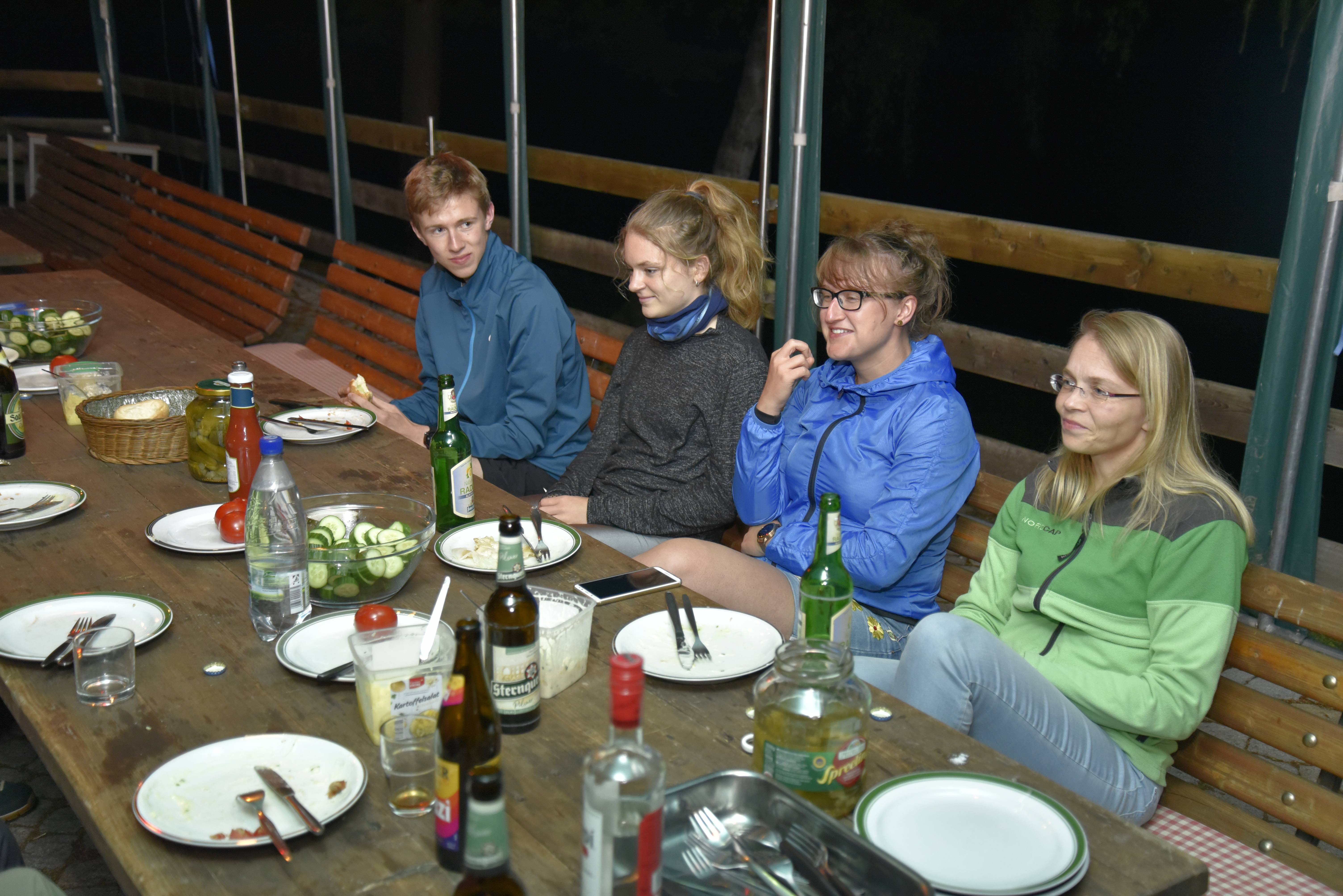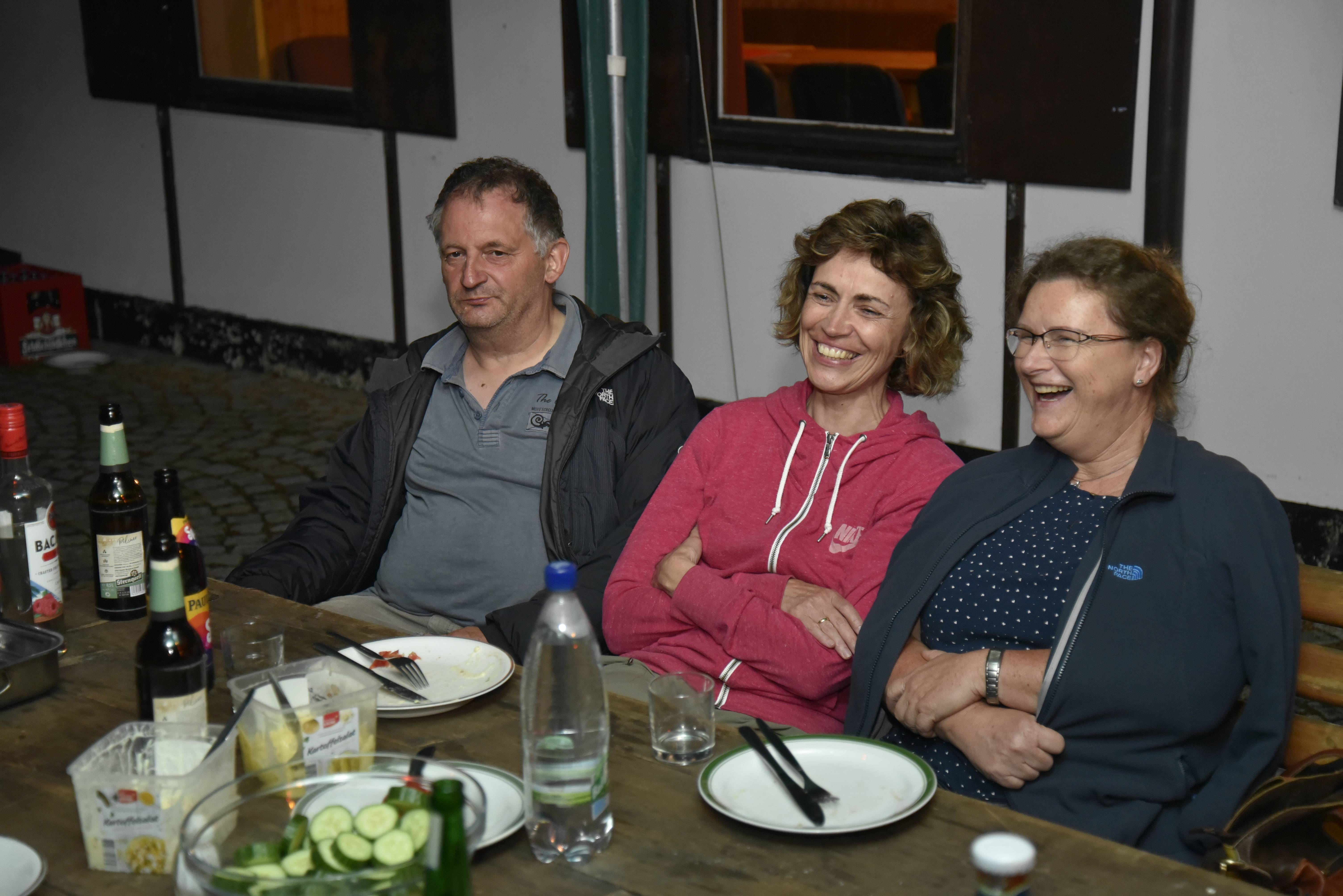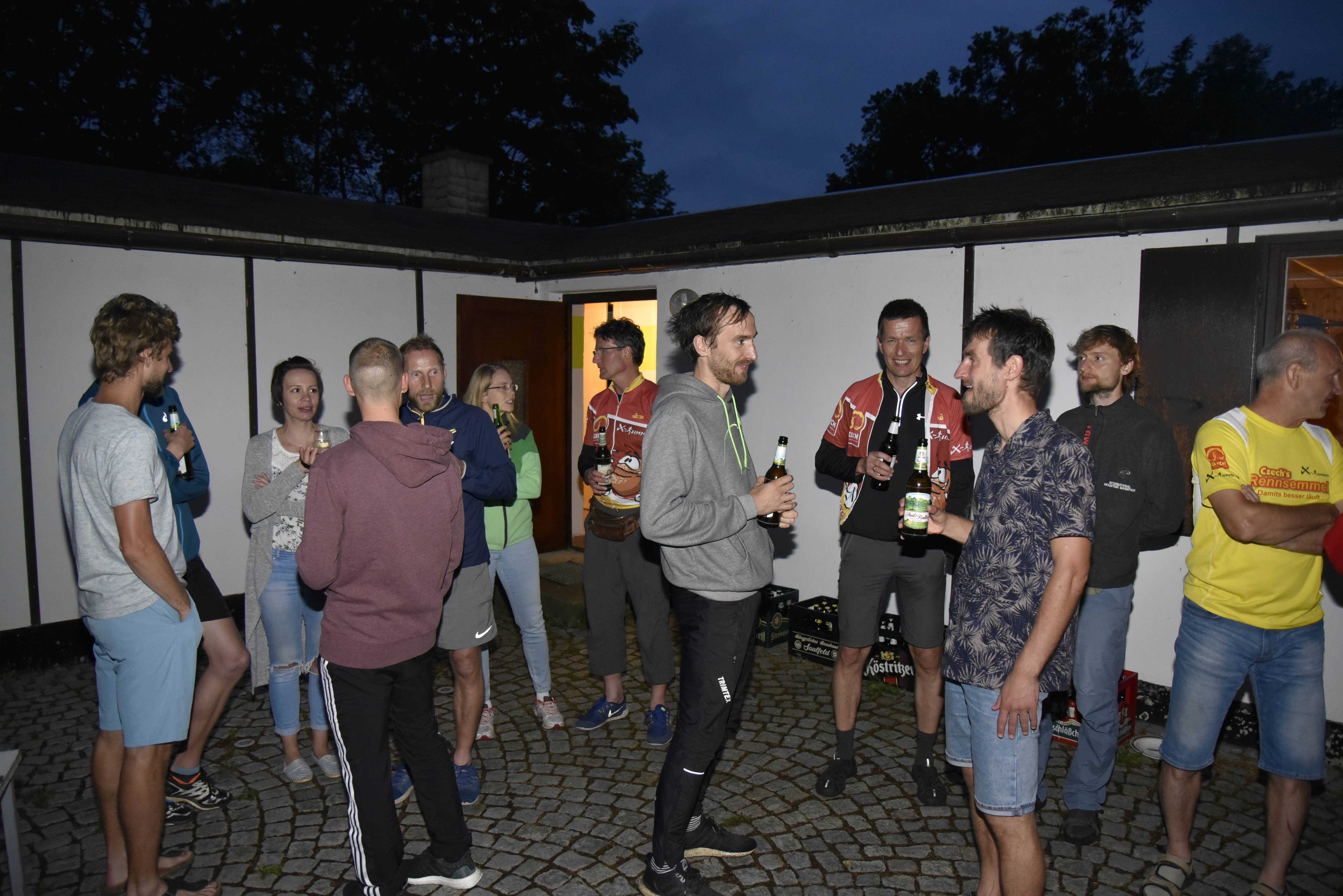 Inzwischen laufen auch im Bootshaus in Saaldorf die Vorbereitungen für den gemütlichen Tagesausklang. Mehr als 20 unserer Matadoren kommen schließlich an diesen nahe dem Ziel gelegen Ort, der in den vergangenen Jahren unser Übernachtungsquartier vor dem Rennen war. Diesmal brennt der Rost ohne die Aufregung vor dem Wettkampf, sondern geprägt von der Freude über das am Tag Erreichte. Die Anekdoten von der Strecke werden ebenso ausgetauscht wie die ersten Pläne für die 22. Auflage des Rennens am 20. Juni 2020 geschmiedet. An dieser Stelle auch ein herzliches Dankeschön an den Ruderverein Lobenstein für die Bereitstellung des Bootshauses und an Martin Höhne für die Besorgung von Speis und Trank.