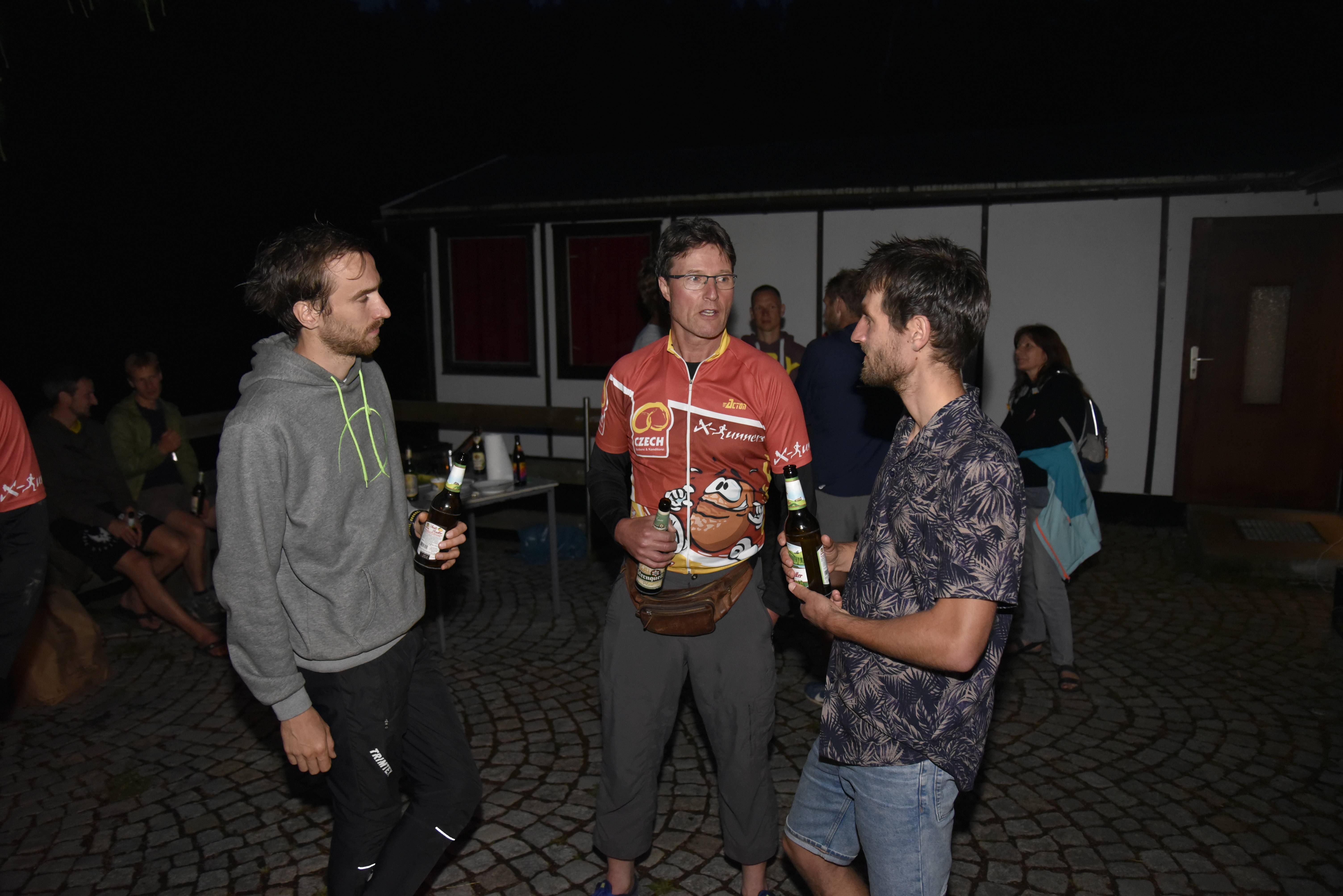 Im Zielbereich gibt es zunächst großes Hallo mit den beiden anderen Teams. Kurz nach 20:00 Uhr läuft Paul begleitet von seiner Mannschaft über die Ziellinie. Gemeinsam freuen wir uns über den erreichten 35. Platz in einer Zielzeit von 14 Stunden 10 Minuten und 12 Sekunden.