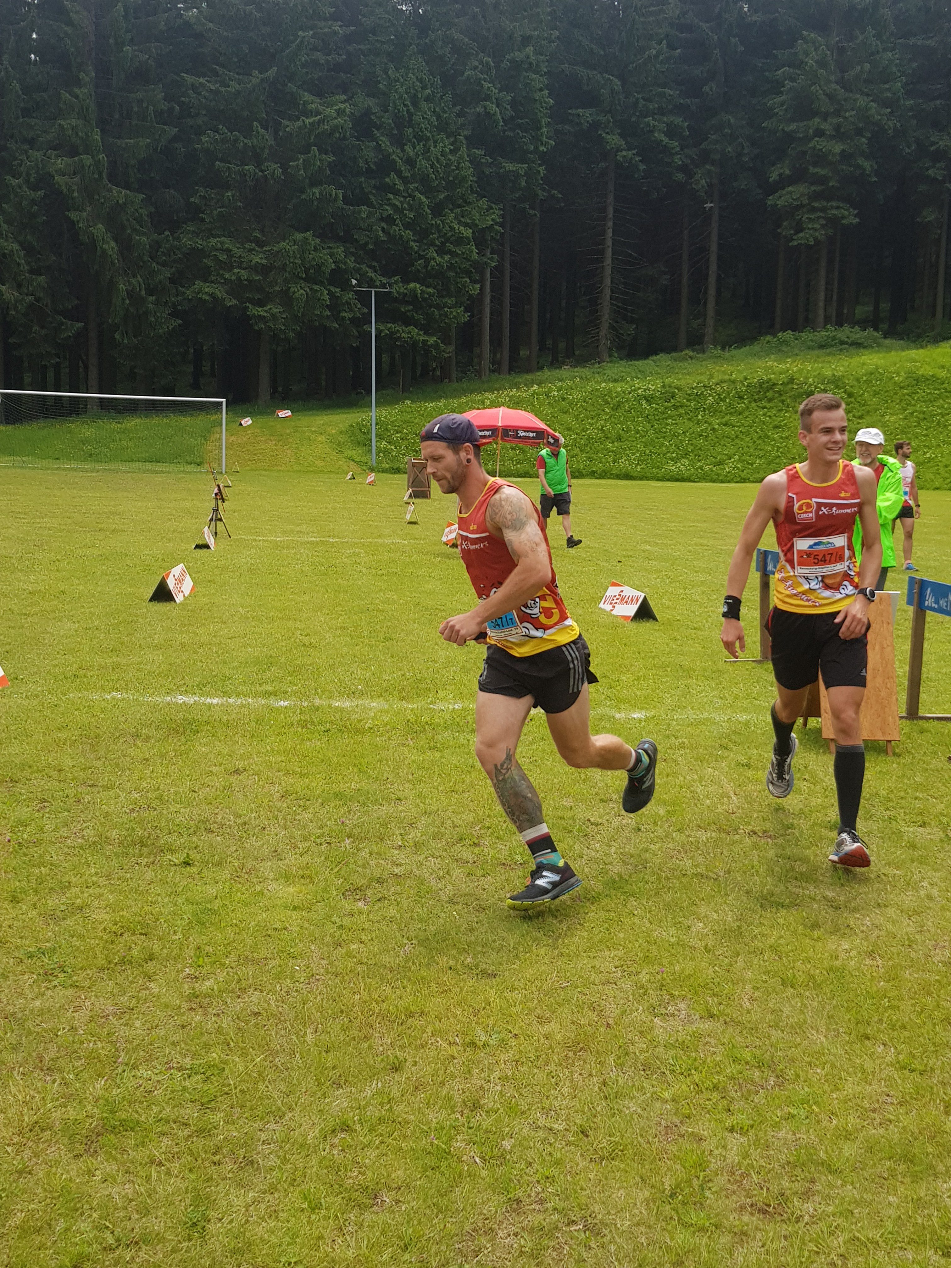 Der muss, weil der Wechselpunkt unerwartet direkt am Parkplatz liegt, ca. 700 Meter mehr laufen, dies bei ohnehin schon langer Strecke mit viel Anstieg. Den bayerischen Berglaufmeister (Team Landrover) muss Chunky ziehen lassen, doch nach vorn auf Günters Männer mit Marcel Krieghoff verlieren wir nur 3 Minuten. Die unterstreicht die Härte auf diesem Teilstück.