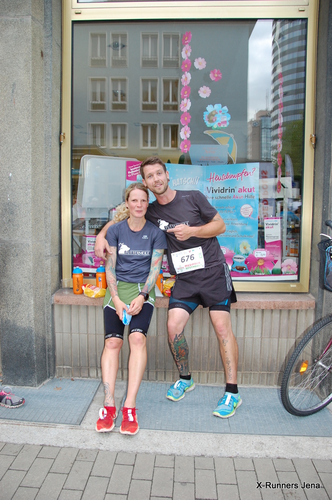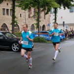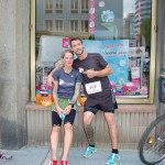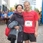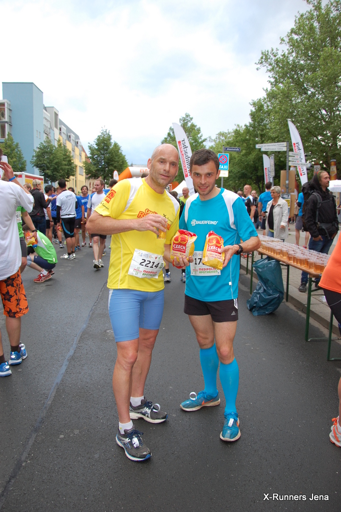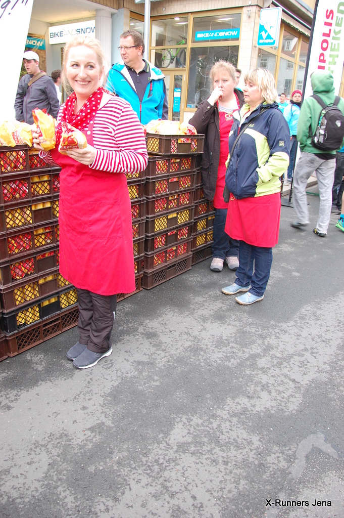 Andre Czech, der sich zu Beginn des Laufes sogar kurz in der Spitzengruppe zeigte, verschaffte den vielen Teilnehmern des Firmenlaufs einen besonderen Leckerbissen: 2.000 Rennsemmeln wurden verteilt, u.a. auch von seiner Frau Mandy. Die andere Mandy war wieder mit der Kamera unterwegs und verfolgte mit Anne Brauckmann das Geschehen.