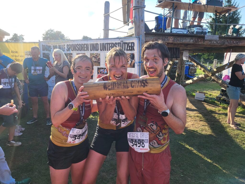 Das restliche Team ließ sich nicht beirren, probierte die Schlammbäder mit sportlicher Gelassenheit und Teamspirit aus und finishte nach tatsächlichen 10,8 km und 430 Höhenmetern in 1:34:40 Stunden (Platz 173–175). Spannend am Rande: Für Anke hätte es in ihrer AK sogar Platz 2 gegeben, für Stephanie Platz 4 – wenn die Anmeldung korrekt gelaufen wäre. Mit Doro im Ziel hätte das Team sogar Platz 13 geholt in einer Gesamtzeit von 6:18:40 Stunden.