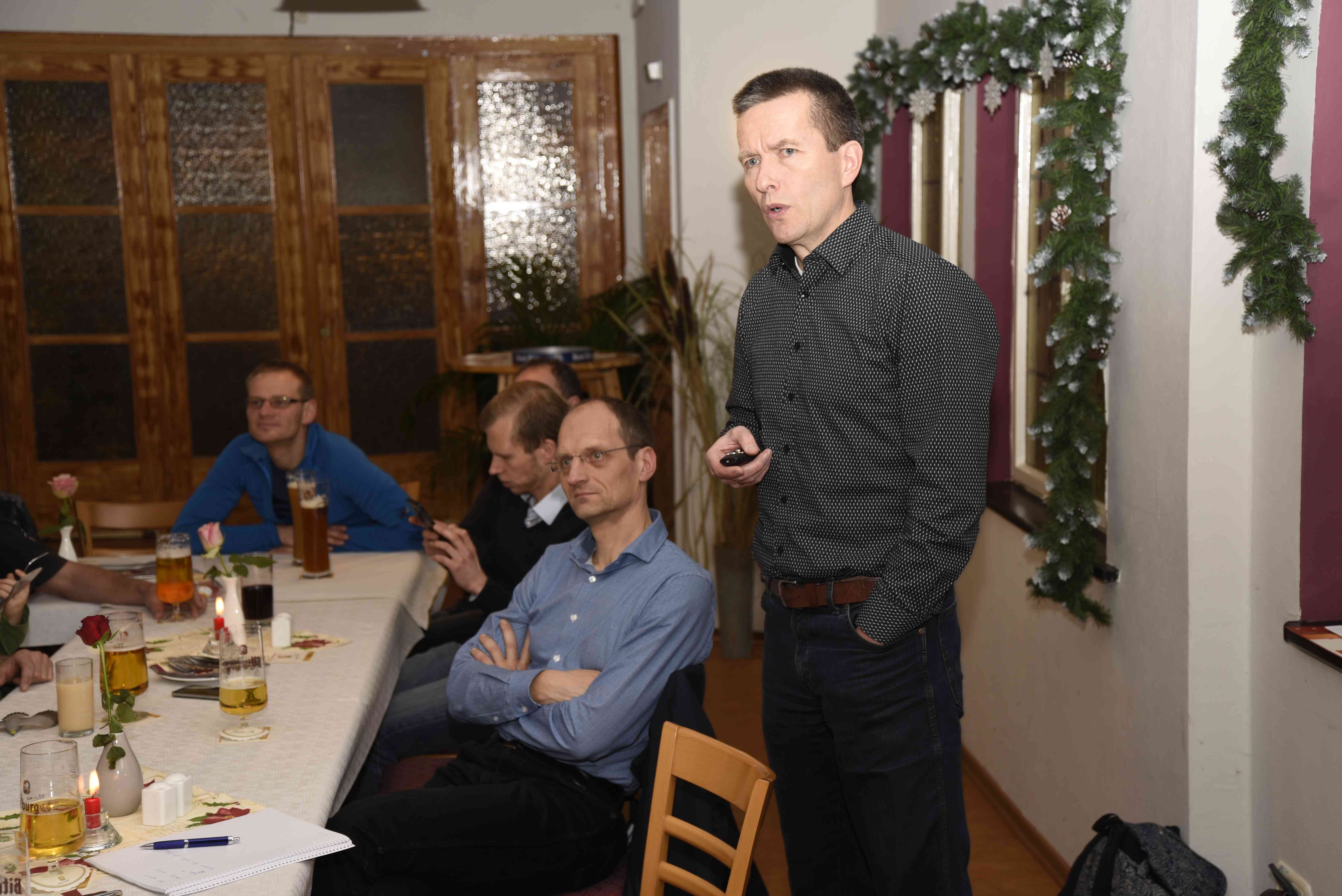 Nach dem Abschluss des offiziellen Teils ließen wir den Abend gemütlich ausklingen. Im Hintergrund lief die Dia-Show von den Staffel-Läufen des Jahres mit vielen Team-Aufnahmen und gelungenen Schnappschüssen von der Strecke. Damit gab es weiteren Gesprächsstoff für die ohnehin angeregte Unterhaltung.