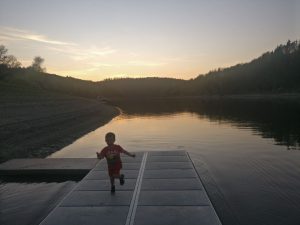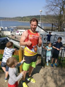 In diesem Jahr hatte Frank alle Fäden in der Hand und hat dementsprechend alle organisatorischen Belange hervorragend gemanagt. Wie es sich für einen echten Häuptling gehört war auch er- samt Kindern und Freundin- der Erste der das Bootshaus am Freitagmittag eingeräumt hat. Ich bin um 17:00 Uhr eingetroffen, danach habe ich meinen Schlüssel für das vorderste Zimmer in Richtung Wasserseite bekommen. Nach einer kurzen Pause zum umziehen, sind wir zusammen eine kleine Runde in Richtung 526m hohen Heinrichstein gerannt um die Beine etwas zu bewegen, oder besser gesagt gejoggt. Dort angekommen haben wir den grandiosen Ausblick gebührend gewürdigt. Der Rückweg lief bedeutend einfacher, denn es ging bis zum Bootshaus nur bergab. Dort angekommen hat sich auch schon der nächste X-Runner eingefunden. Nachdem Andreas seine Utensilien ins Bootshaus gebracht hat, haben wir uns an das Abendessen gemacht. Am Folgetag stand der wunderschöne Bleilochlauf an- folgerichtig gab es also Nudeln mit zwei Soßen. Eine scharfe für Andreas und mich und eine milde für alle anderen. Anschließend haben wir die Ruhe und den schönen Ort einfach genossen. Außerdem konnten wir aufgrund des klaren Himmels Sternenbilder, diverse Satelliten und Flugzeuge beobachten. Sogar die ISS war im Gespräch. Als Höhepunkt und Tagesabschluss gab es noch ungefähr 45 Partien mit dem lustigen Spiel „Looping Louie“.