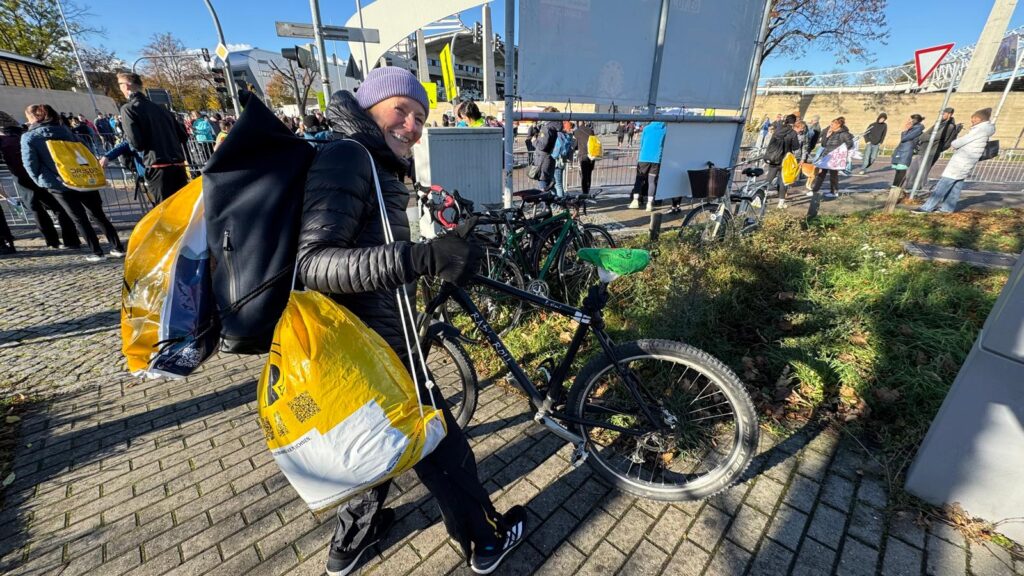 Die Etappen waren schnell aufgeteilt, auch kümmerte sich Wanda wieder um die Abholung der Startunterlagen am Samstag. Dieses Jahr hatten wir ein Fahrrad dabei, um nach dem 3. Wechsel an der Gläsernen Manufaktur weniger Zeitstress zu haben und schneller zum Treffpunkt für den gemeinsamen Zieleinlauf zu gelangen; Pustekuchen, aber dazu später mehr. Es war stürmig und frisch, Sonne und Regen wechselten sich (zunächst) ab.